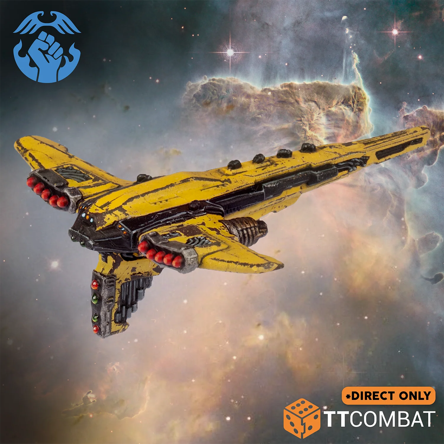 This set contains 6 Resistance Corvettes. These diminutive ships are some of the smallest available to Resistance commanders. Armed with NCA-1 Missiles, these Close Action weapons are excellent at fighting in atmosphere, and get more powerful the more you shoot, thanks to the Squadron-3 special rule.
