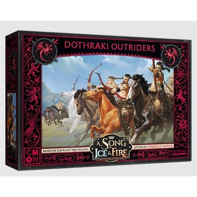 The Dothraki Outriders Unit Box for the A Song of Ice and Fire: Tabletop Miniatures Game gives House Targaryen players a swift ranged force for their army. These lightly armored mounted troops make full use of their horses both before and after raining arrows down on their opponents. With their great speed, the Dothraki Outriders can reach out and deal damage to enemies normally considered safe along the back lines of an army. Enemy commanders will have a difficult time pinning down these highly mobile troops.