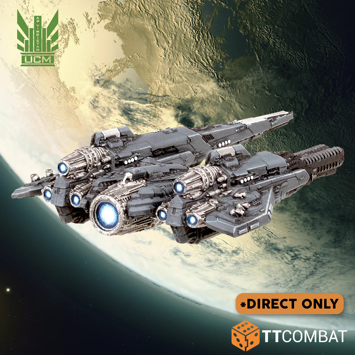 Resin miniatures supplied unpainted and unassembled. This kit will require cleaning and assembly, and could need some small holes filled. Other ships and gaming mats are for scale purposes only. Clear acrylic bases will require super glue and may have a protective blue film on one side that will need removing.